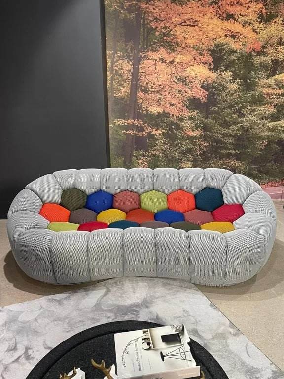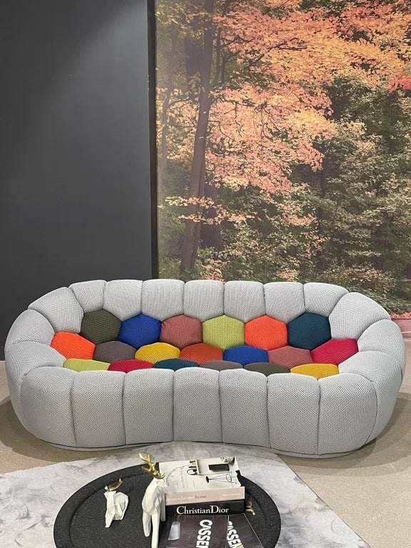 Ovaj dizajnerski ležaj odiše luksuzom i udobnošću zahvaljujući svom prepoznatljivom, “bubble” obliku koji podseća na mekane oblake. Presvučen je prijatnim, mekanim štofom koji pruža izuzetnu toplinu i komfor, dok pažljivo oblikovani segmenti stvaraju jedinstvenu estetsku dinamiku i ergonomsko oslanjanje. Idealno se uklapa u moderne, minimalističke i ekskluzivne enterijere, donoseći dozu razigranosti i sofisticiranosti u svaki prostor.